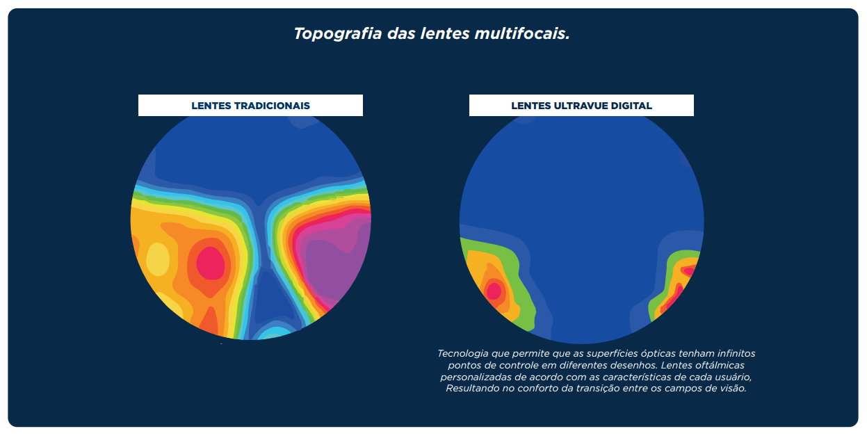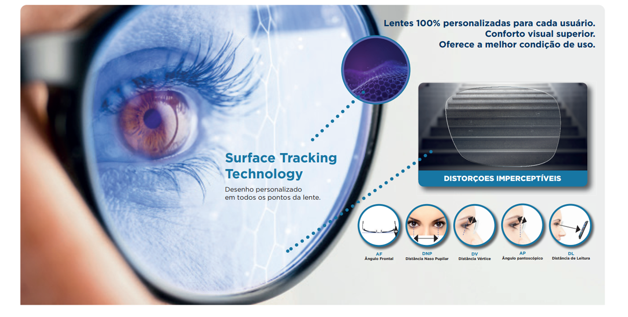 Tecnologia Freeform - Confecciona lentes com alta precisão ótica, trabalhando-as ponto a ponto, na parte interna, garantindo características únicas de visão para cada usuário.